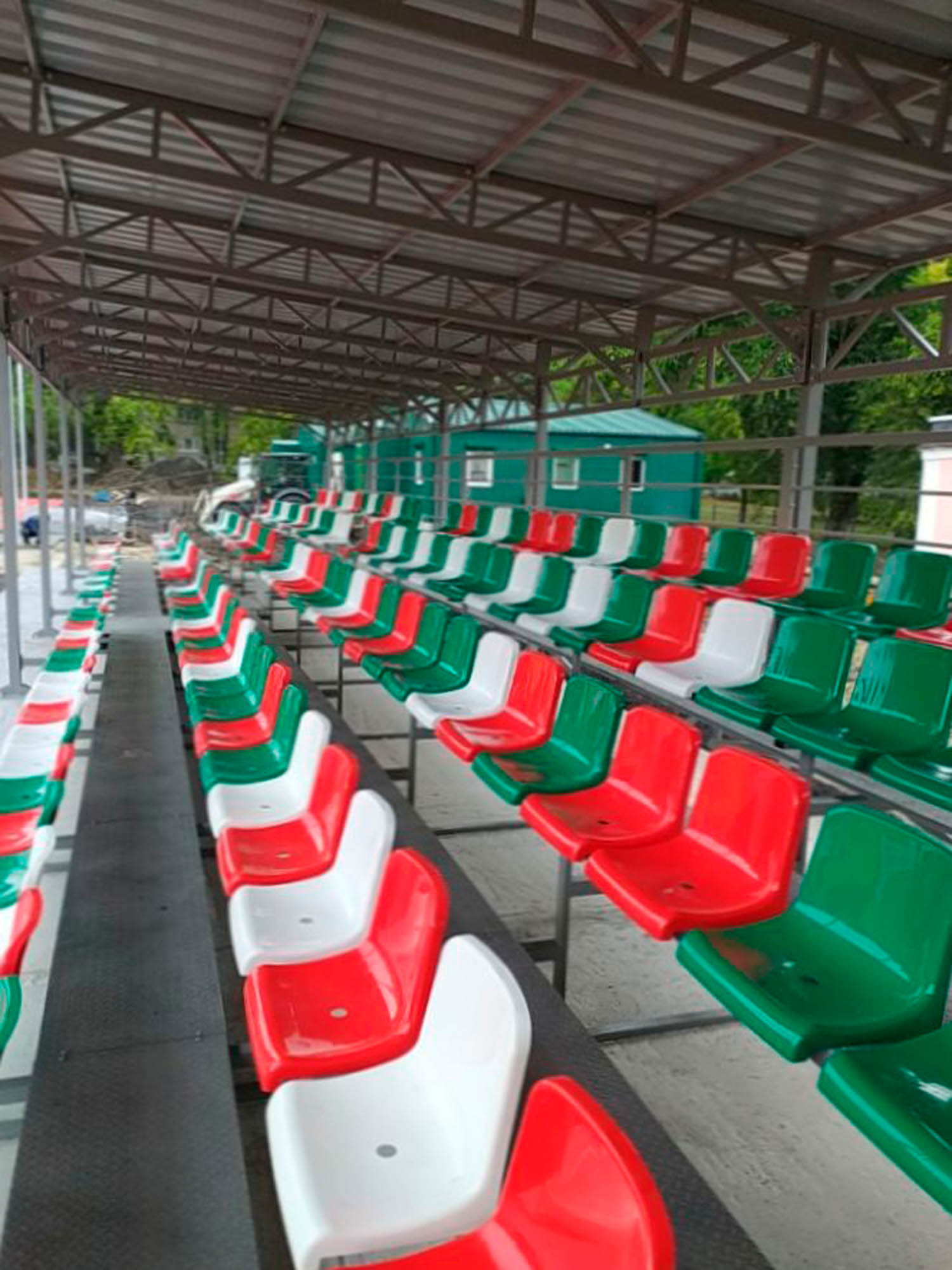 - Пониженные требования к основанию. Может крепиться к сборно-разборной или быстровозводимой трибуне