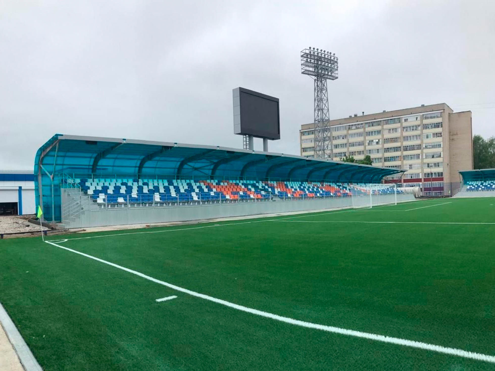 Собственная разработка и производство компании «Авангард». Навес «Премьер» - это инженерная конструкция, созданная для долгосрочной эксплуатации на спортивных объектах любого масштаба.