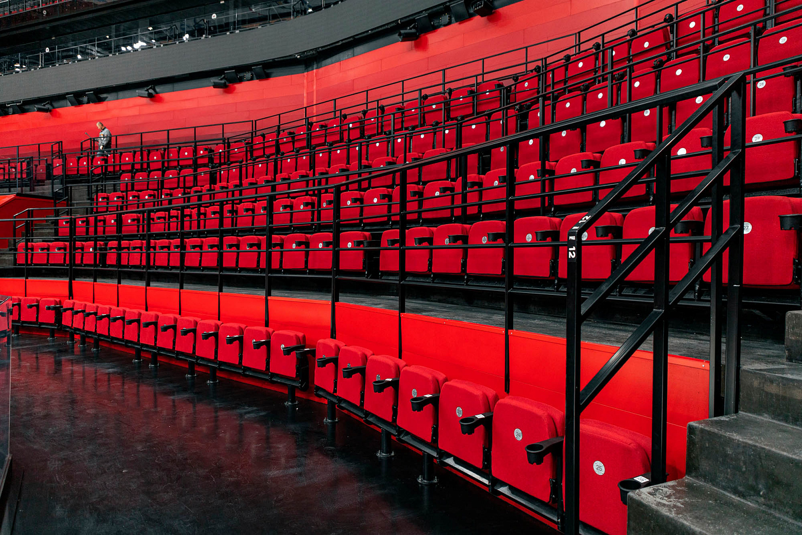 Заказчику необходимы были трибуны как в NHL - чтобы зритель сидел прямо перед ареной и мог стучать в борт. И мы смогли это реализовать! Хотя сам проект не предполагал геометрической возможности такого решения.